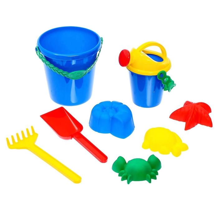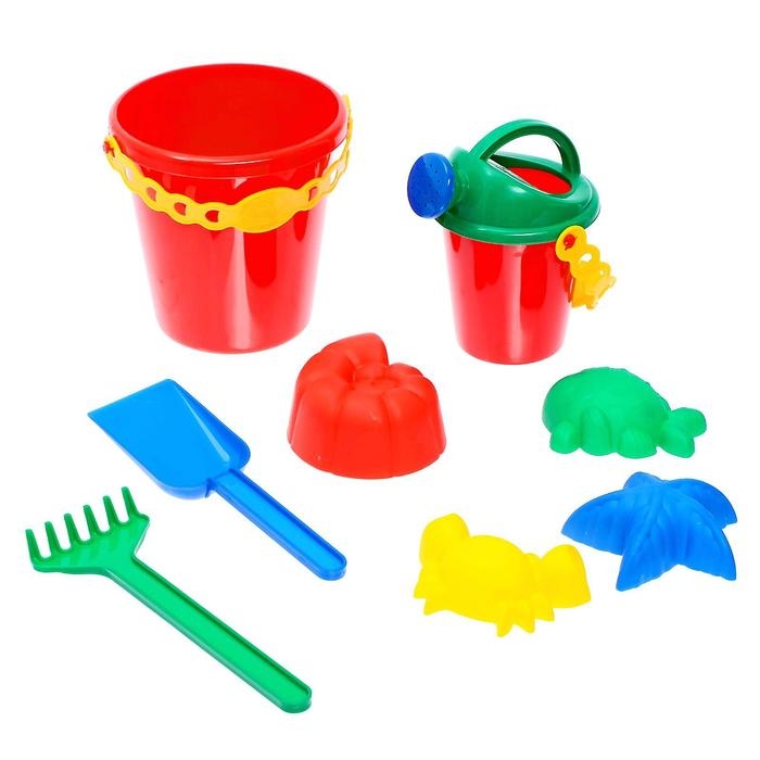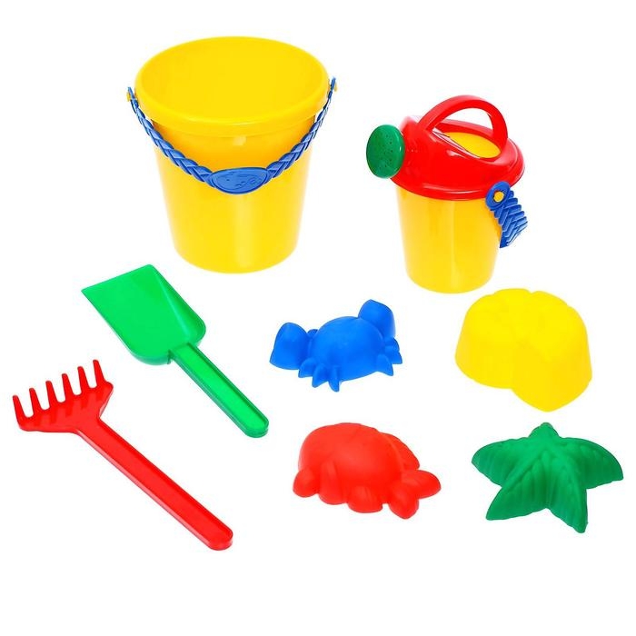 Набор для игры в песке №1: ведёрко, 4 формочки для песка, грабельки, лопатка, МИКС