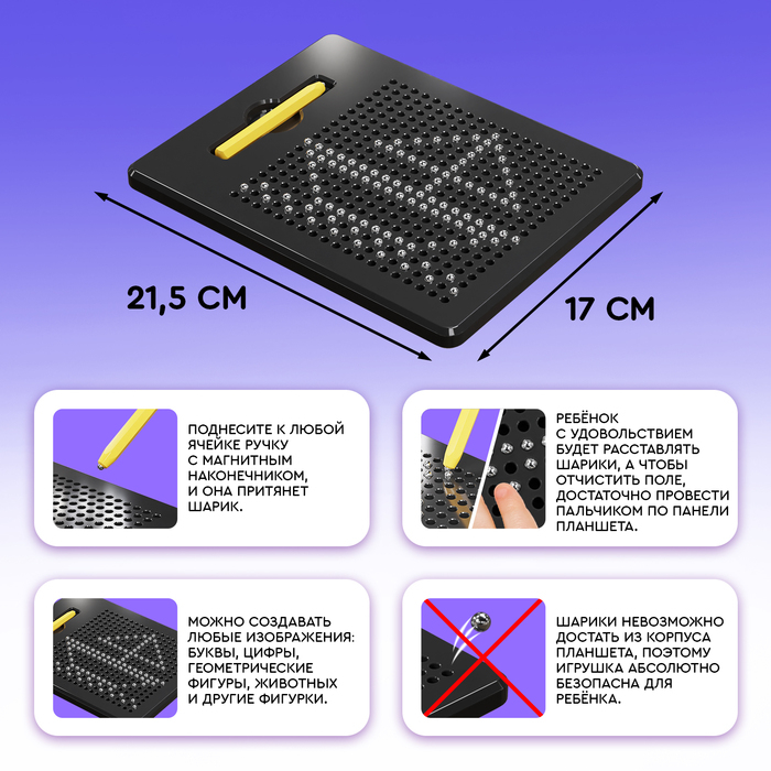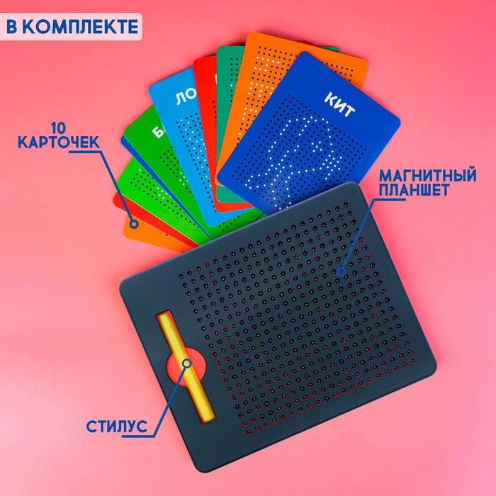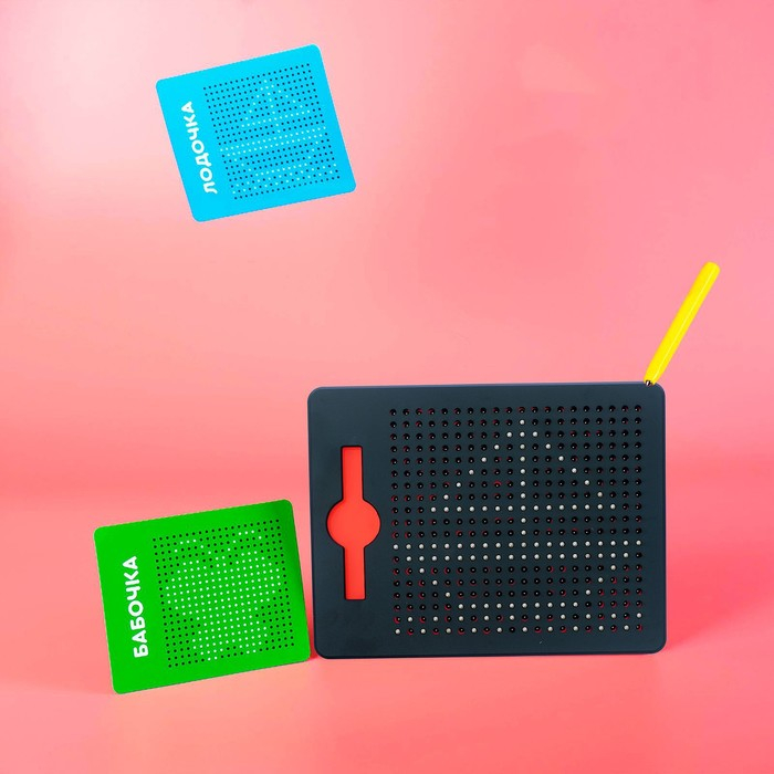 Планшет обучающий «Магнитное рисование», средний, 380 шариков, 10 карточек, цвет чёрный
