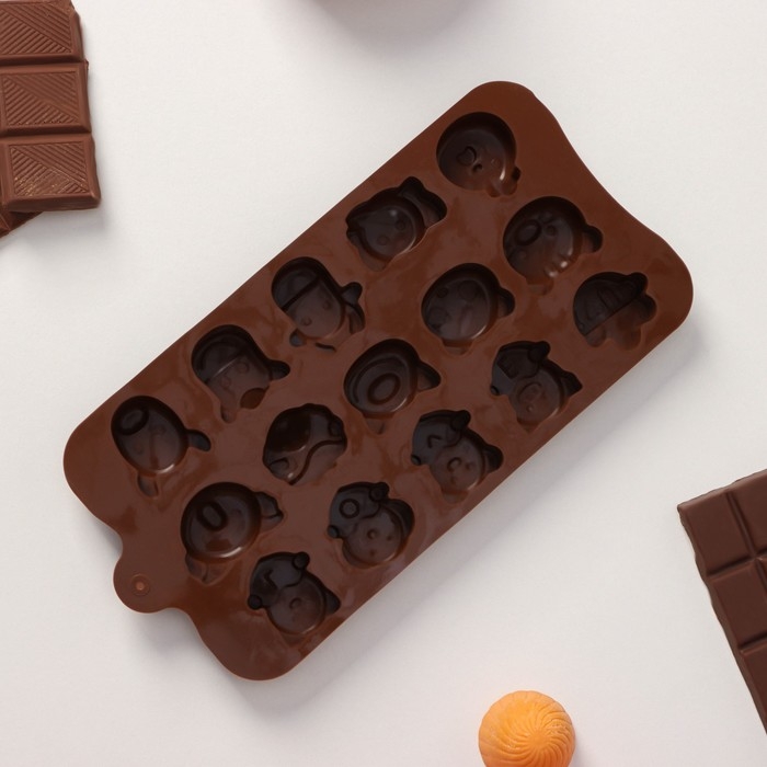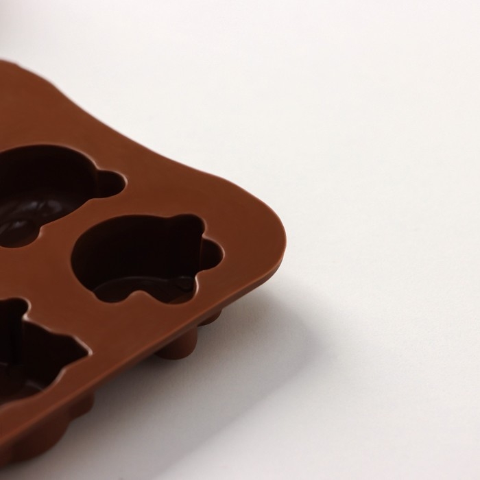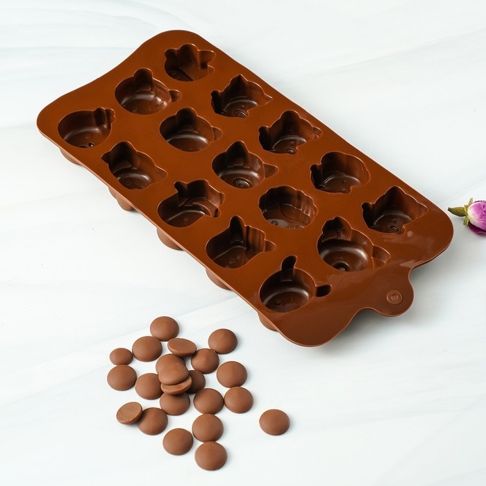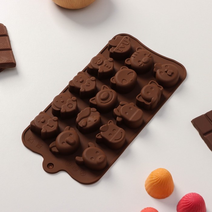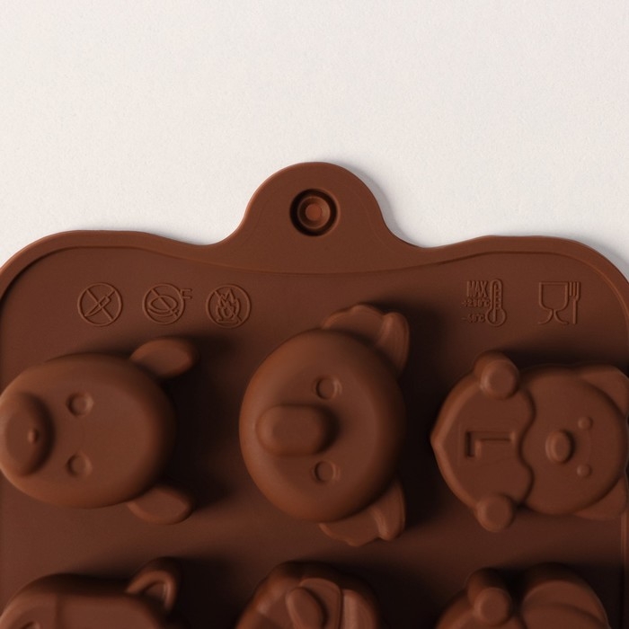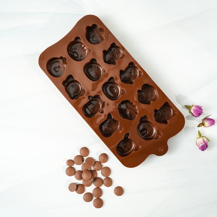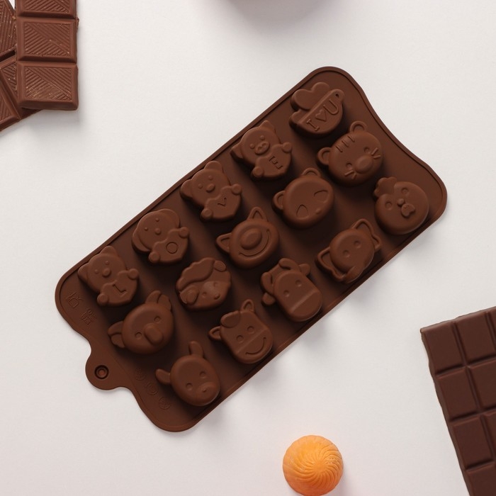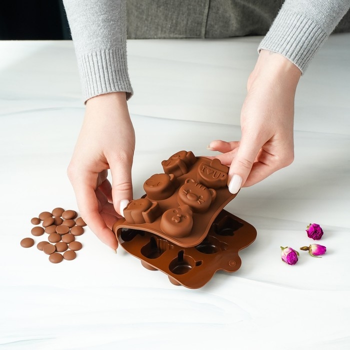 Форма для конфет и шоколада Доляна «Животные. Любовь», силикон, 20,6×10,5×1,4 см, 15 ячеек, цвет коричневый