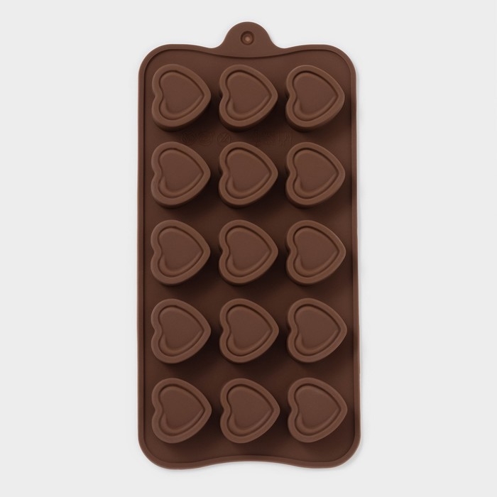 Форма для конфет и шоколада Доляна «Сердце», силикон, 21×10×1,5 см, 15 ячеек (2,9×2,7 см), цвет коричневый