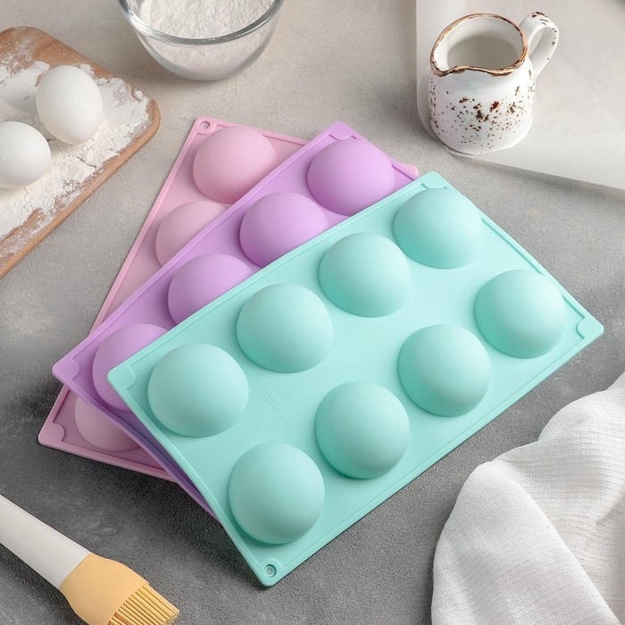 Форма для выпечки Доляна «Полусфера», силикон, 29×17 см, 8 ячеек (d=5,8 см), цвет голубой