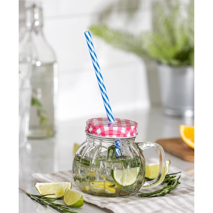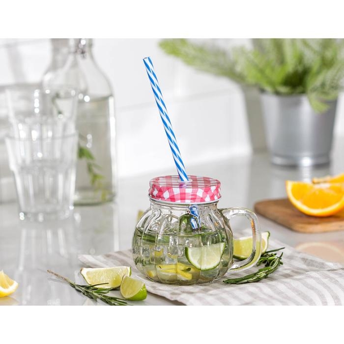 Набор кружек стеклянных Доляна «Летняя прохлада», 2 предмета: 2 кружки с крышками и трубочками 450 мл