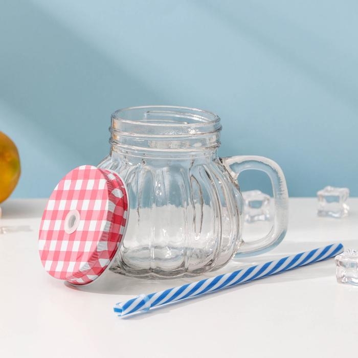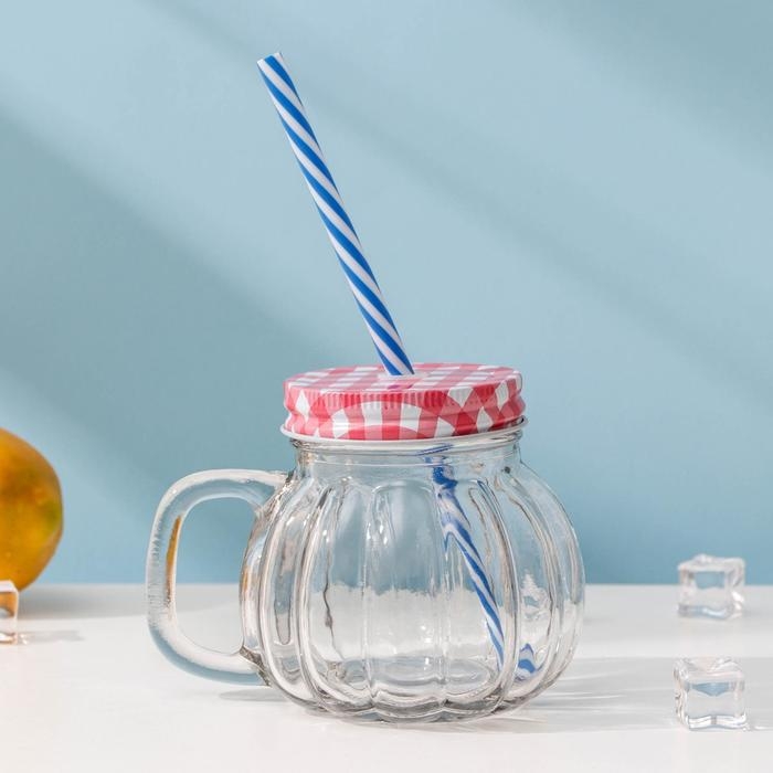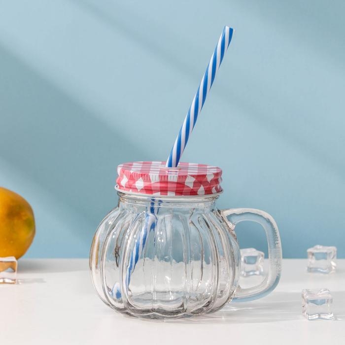 Кружка стеклянная с крышкой и трубочкой «Тыковка», 400 мл, 12,5×10 см, цвет МИКС