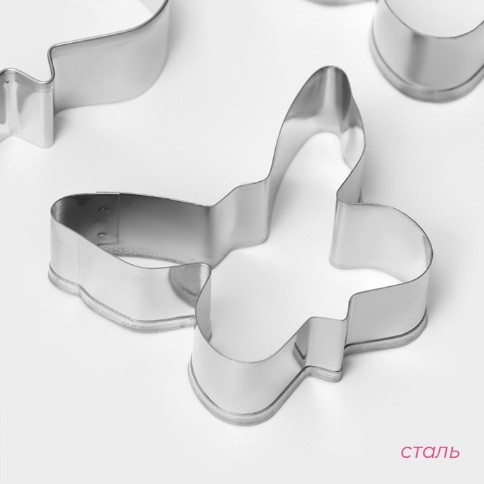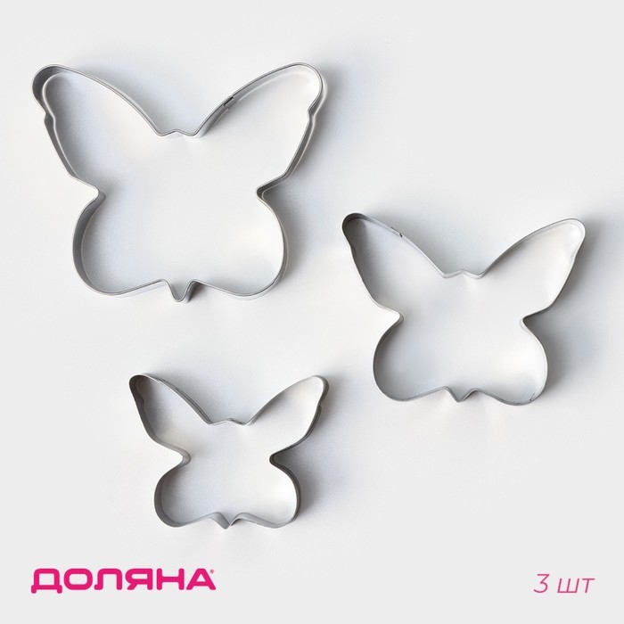 Набор форм для печенья Доляна «Бабочка», 3 шт, цвет серебристый