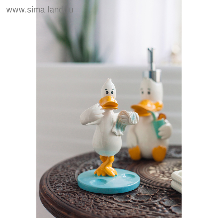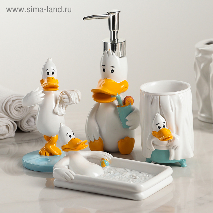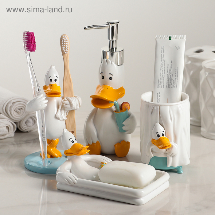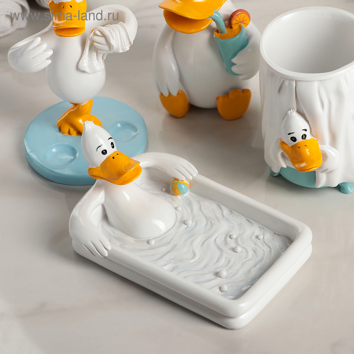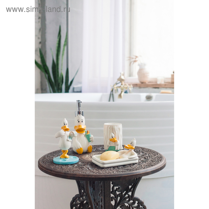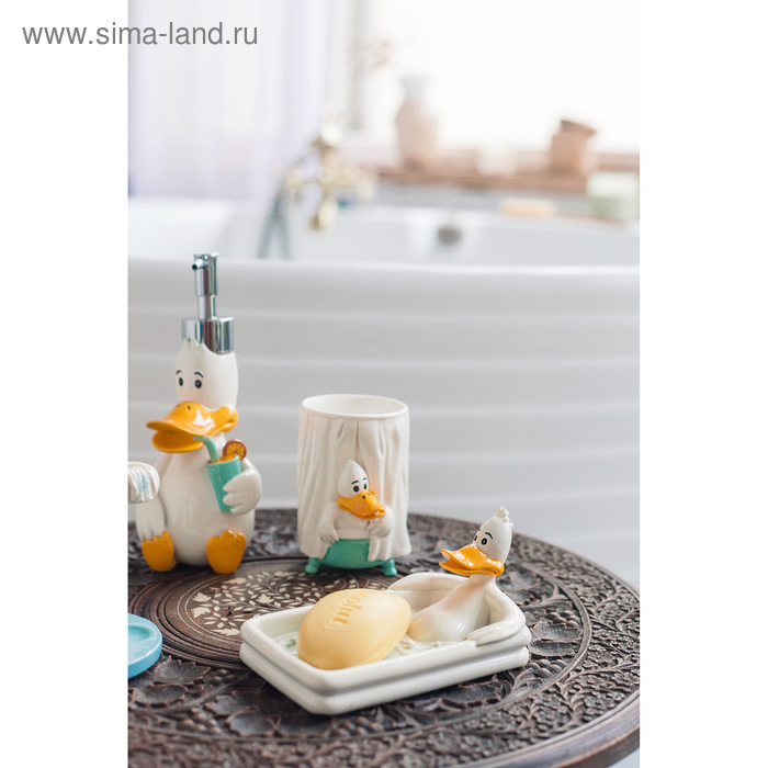 Набор аксессуаров для ванной комнаты «Утиные истории», 4 предмета (дозатор 200 мл, мыльница, стакан, подставка для щёток), цвет белый