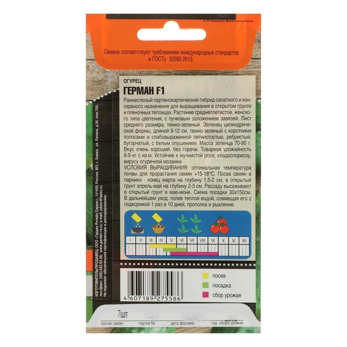 Семена Огурец Герман F1 самоопыляемый, 7 шт