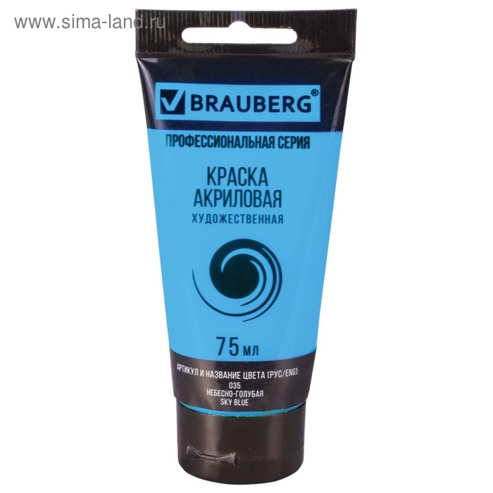 Краска акриловая художественная туба 75 мл, BRAUBERG "Небесно-голубая"