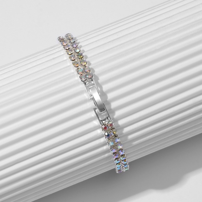 Браслет со стразами «Лёд» элегантность, 2 ряда, цвет радужный в серебре, 18 см