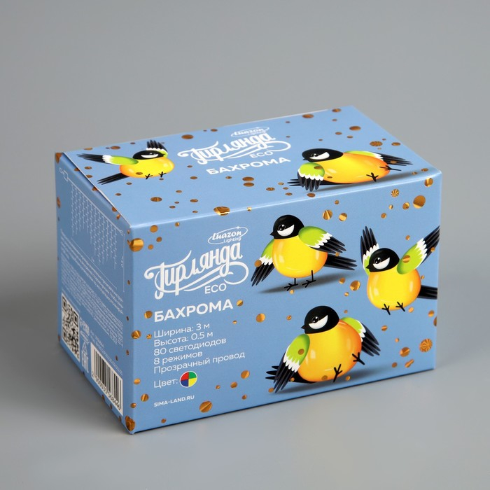 Гирлянда «Бахрома» 3 × 0.5 м, IP20, прозрачная нить, 80 LED, свечение мульти, 8 режимов, 220 В