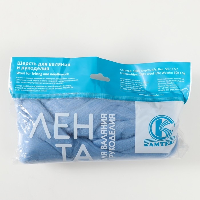 Шерсть для валяния 100% полутонкая шерсть 50 гр (015 голубой)