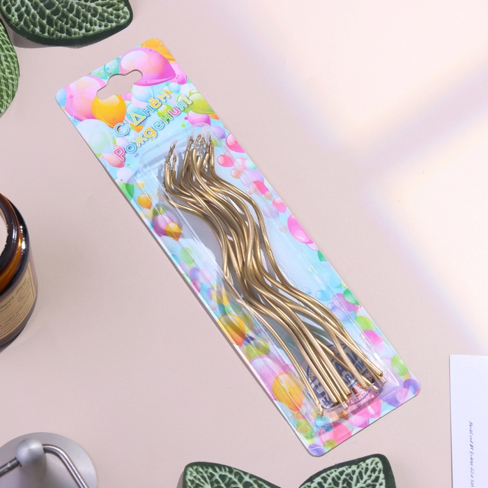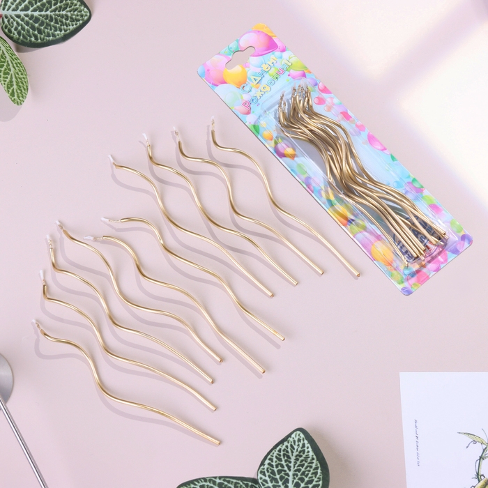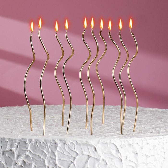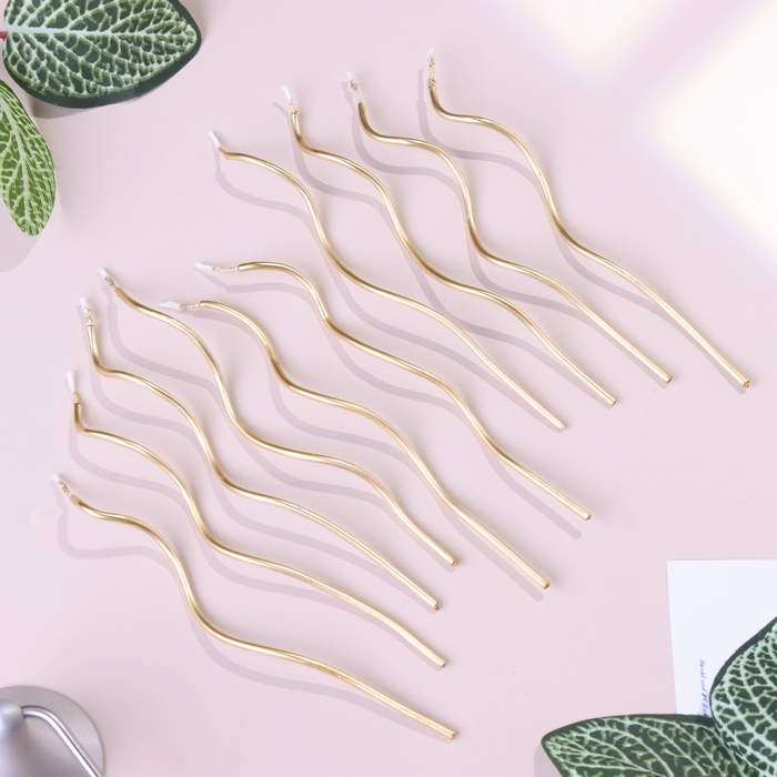 Свечи для торта витые "Серпантин", 10 шт, коктейльные, золотистые, 15 см