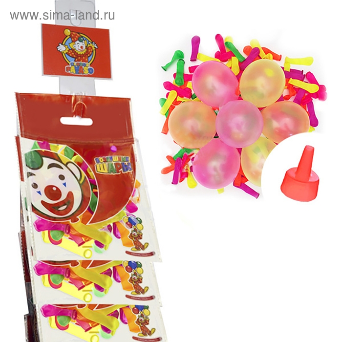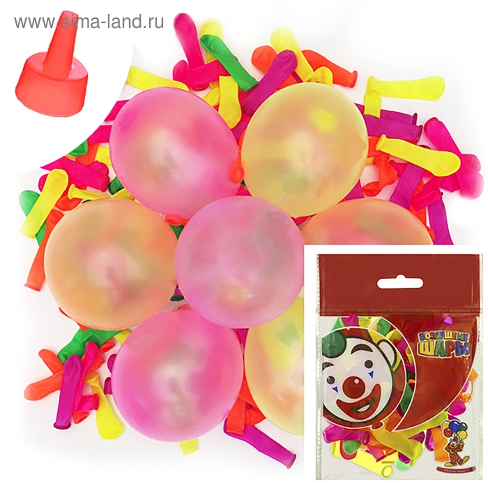 Шар латексный на стрип-ленте 2" «Водяная бомбочка» с насадкой для воды, набор 100 шт., цвета МИКС