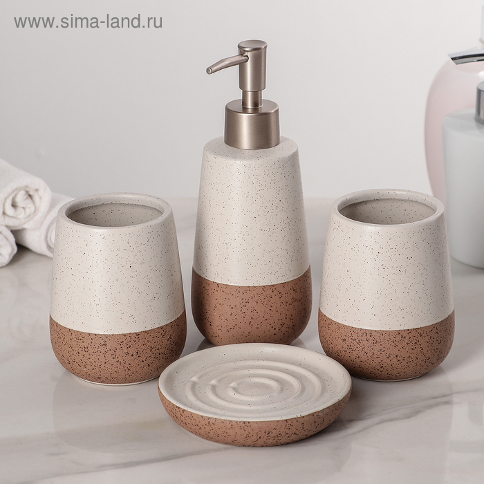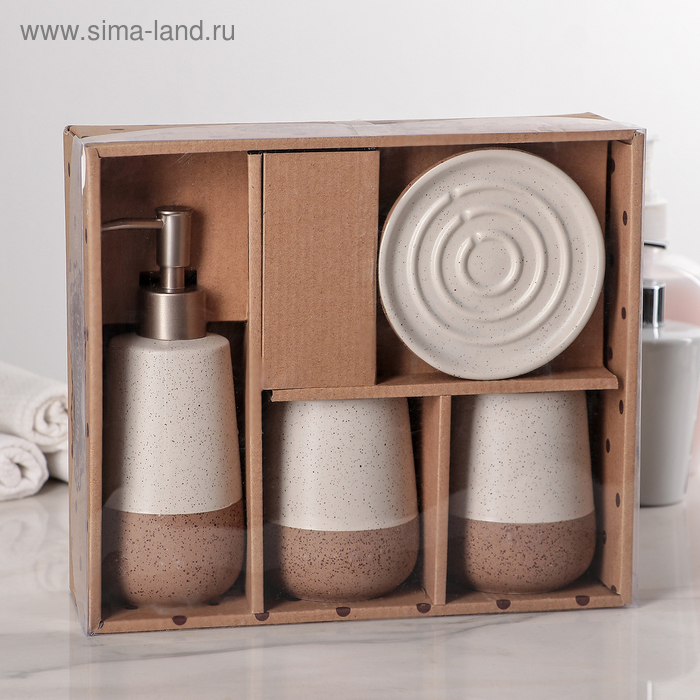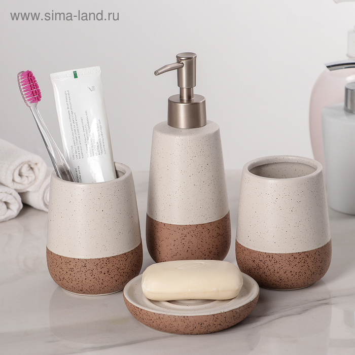 Набор аксессуаров для ванной комнаты «Минимал», 4 предмета (дозатор, мыльница, 2 стакана), цвет бежевый