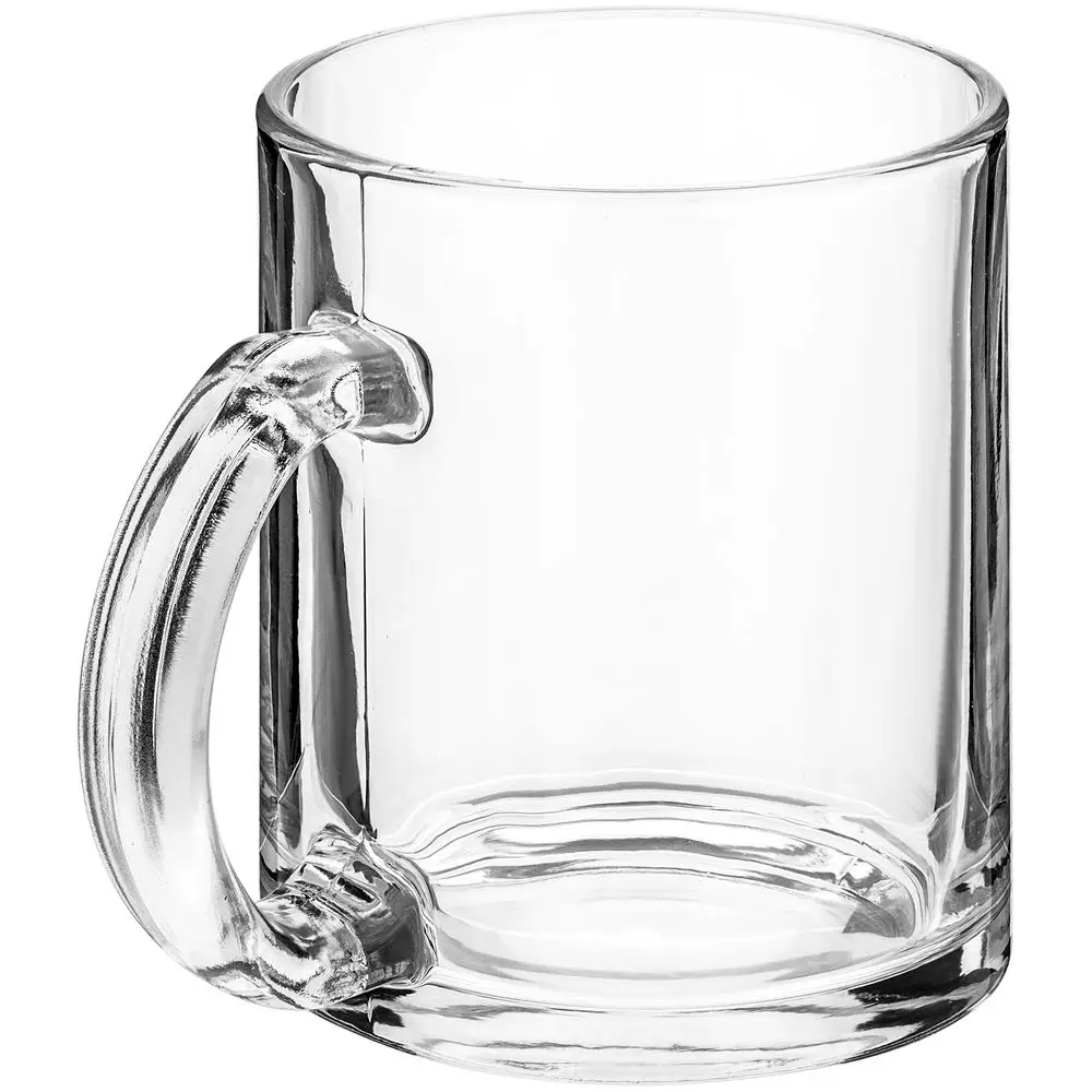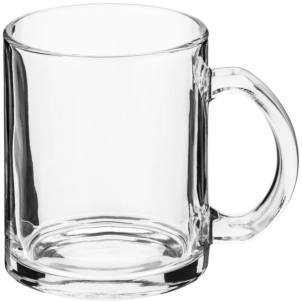 Стеклянная кружка классической формы с удобной ручкой. Подходит для сублимационной печати.