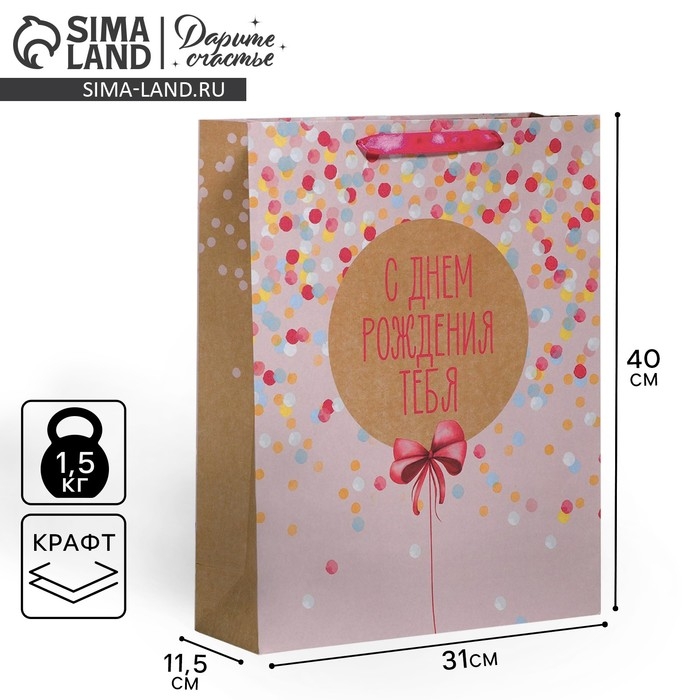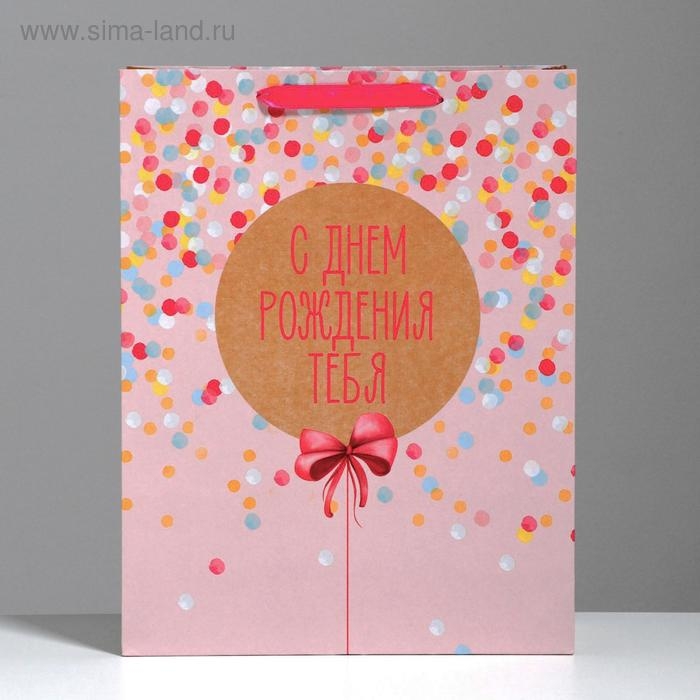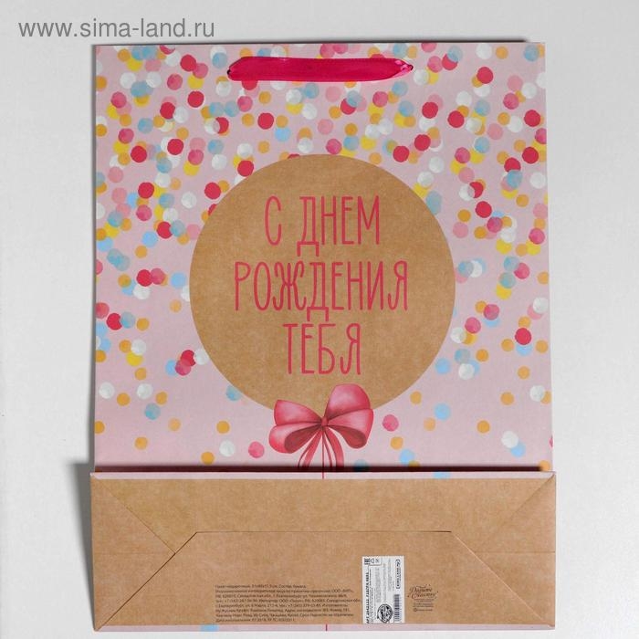 Пакет подарочный крафтовый вертикальный, упаковка, «С Днём Рождения Тебя!», 30 х 41 х 11,5 см