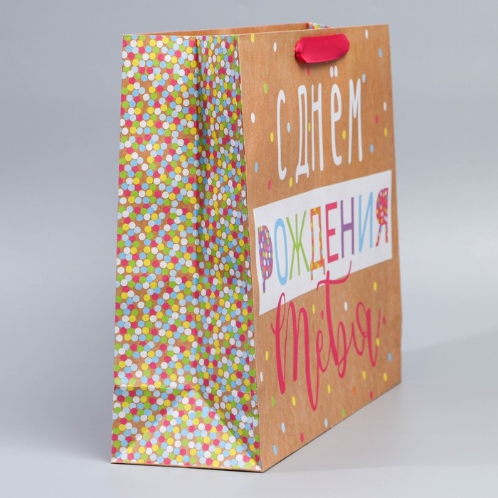 Пакет подарочный крафтовый вертикальный, упаковка, «С Днём Рождения!», L 31 х 40 х 9 см