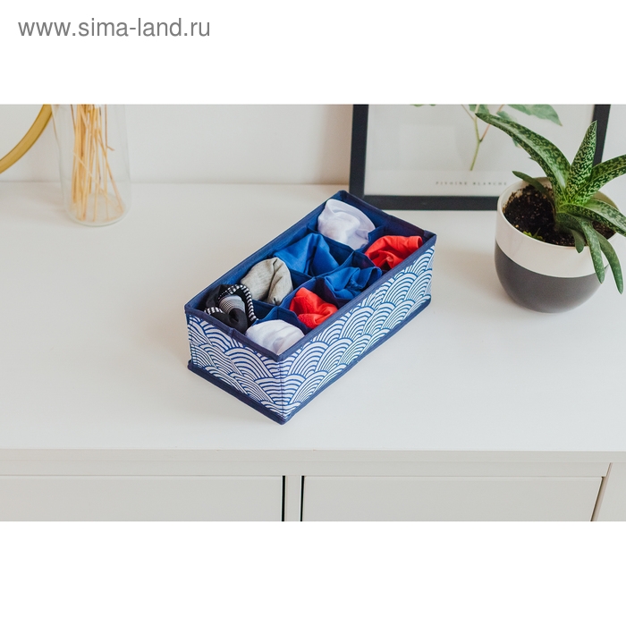 Органайзер для хранения белья Доляна «Волна», 8 ячеек, 28×14×10 см, цвет синий