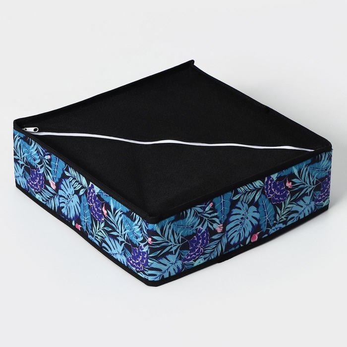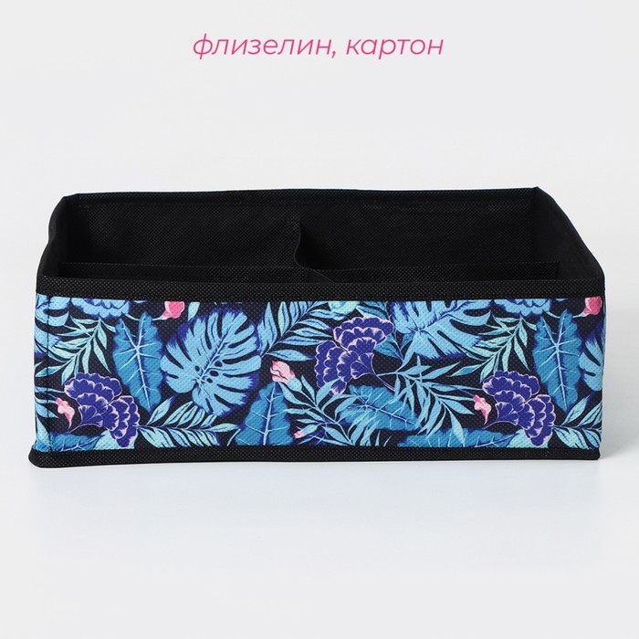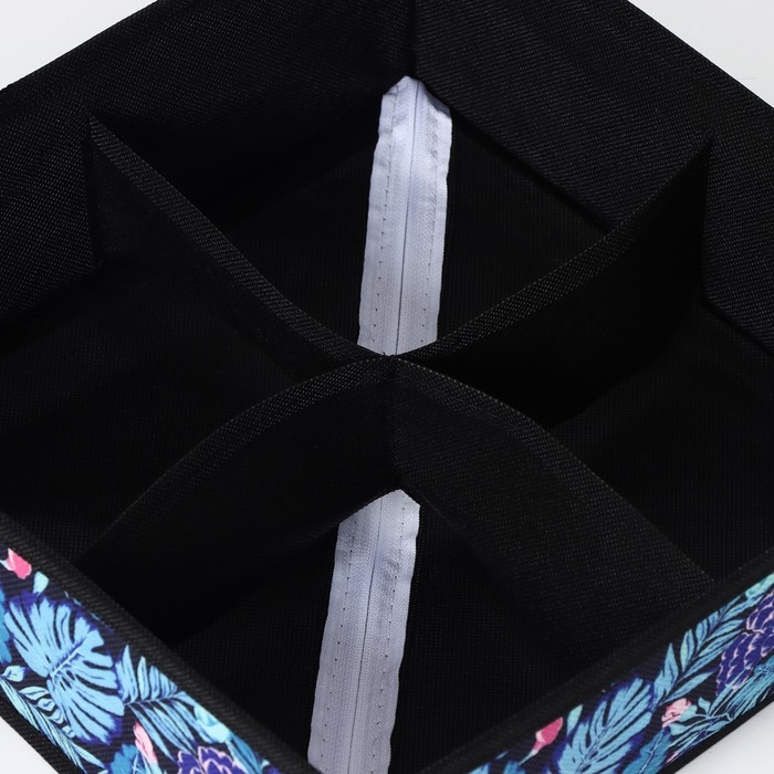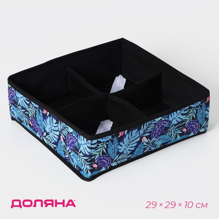 Органайзер для хранения белья Доляна «Тропики», 4 ячейки, 29×29×10 см, цвет синий