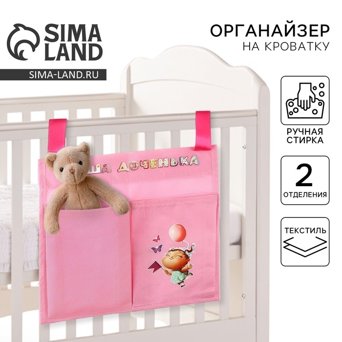 Органайзер для хранения вещей на детскую кроватку «Наша доченька», 2 отделения