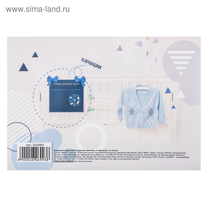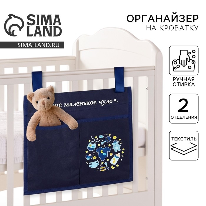 Органайзер для хранения вещей на детскую кроватку «Наше маленькое чудо» для мальчика, 2 отделения