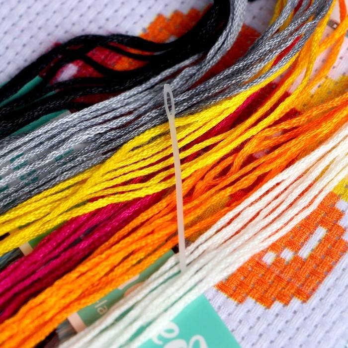 Набор для вышивания крестиком: канва без рисунка 30 × 20 см, нитки 20 шт, пяльцы d = 18 см, иглы 6 шт, шпульки 10 шт, цвет МИКС