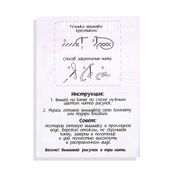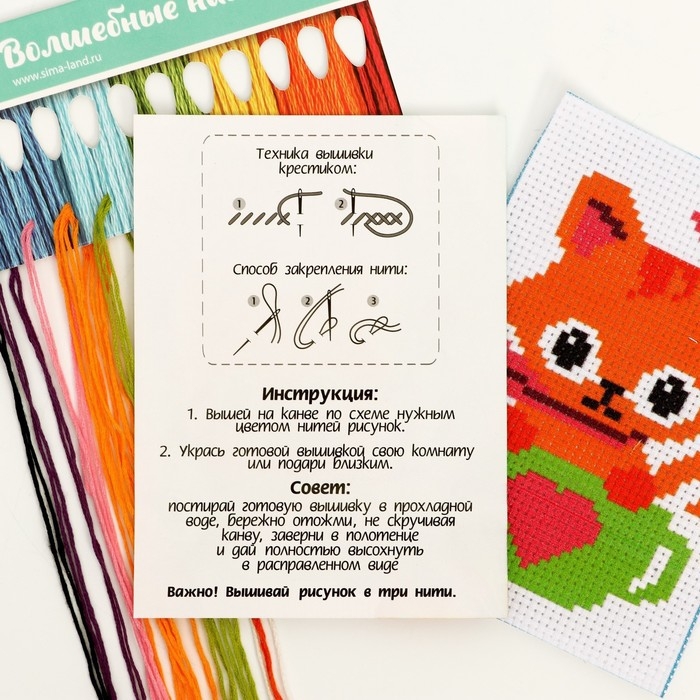 Небольшая вышивка с простым узором и цветной схемой — то, что нужно малышу, чтобы освоить новое хобби.