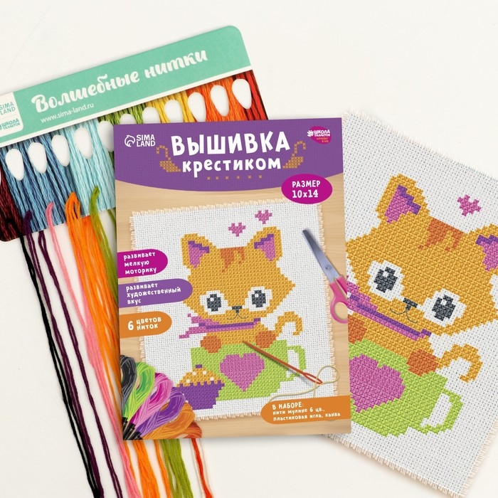Вышивка крестиком для детей «Котик», набор для творчества, 14 х 10 см