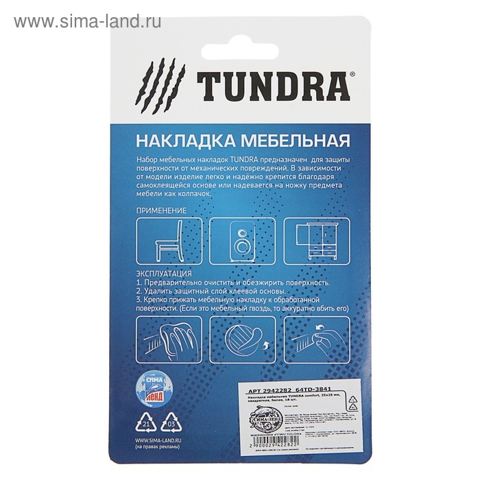 Накладка мебельная ТУНДРА, 25 х 25 мм, квадратная, белая, 18 шт.