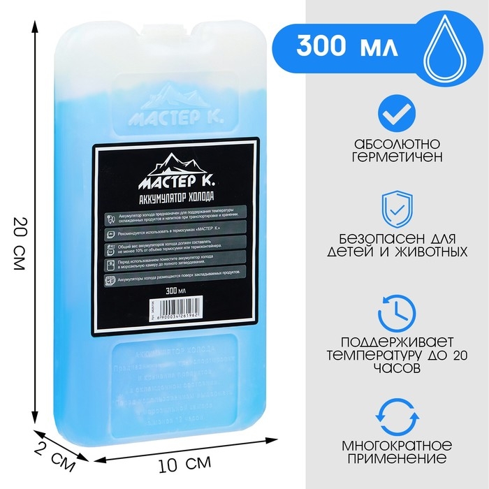 Аккумулятор холода - гелевый хладоэлемент для термосумки "Мастер К.", до 20 ч, 300 мл