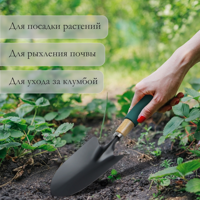 Совок посадочный Greengo, длина 34,5 см, ширина 8 см, деревянная ручка с поролоном