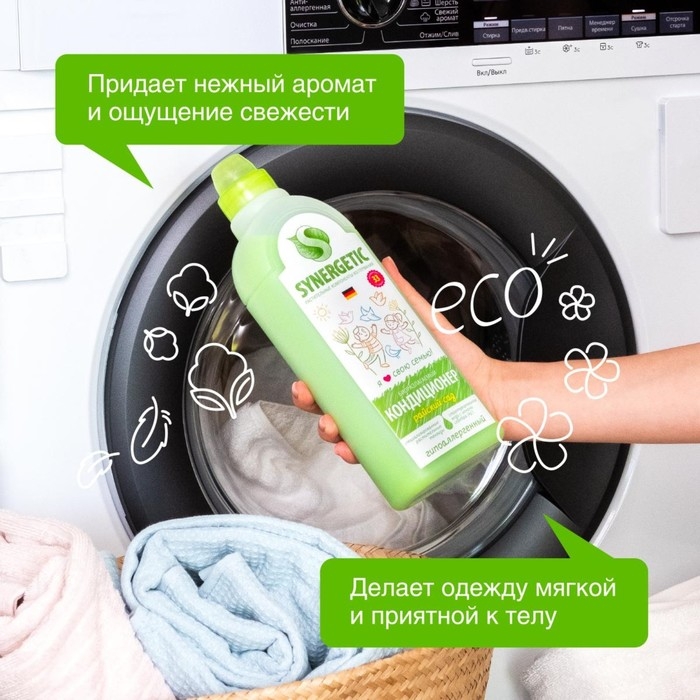 Биоразлагаемый кондиционер-ополаскиватель для белья SYNERGETIC "Райский сад" – высокоэффективное средство, бережно ухаживающее за всеми типами ткани, в том числе деликатными, и придающее особую мягкость и нежность белью после стирки.