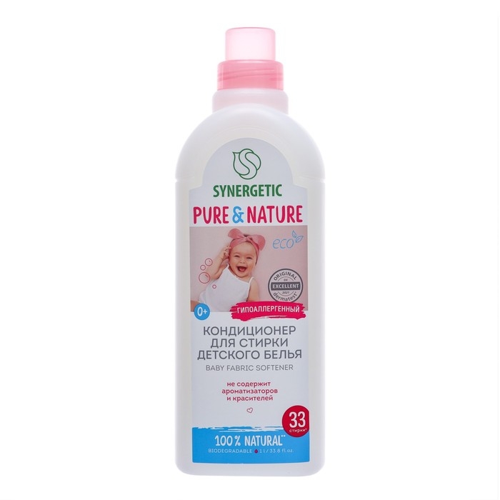 Кондиционер-ополаскиватель для белья Synergetic "Нежное прикосновение", детский,гипоаллергенный, 1 л