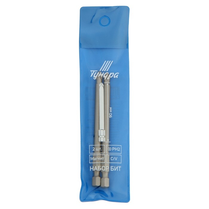 Биты ТУНДРА, намагниченные, сталь CrV, PH2 х 90 мм, 2 шт.