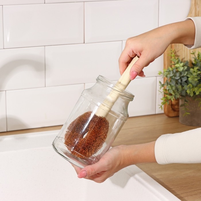 Щётка для чистки посуды Доляна, 8×4,5×23 см, щетина кокос, деревянная ручка