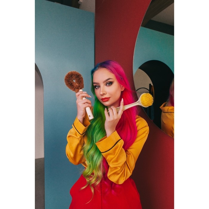 Щётка предназначена для эффективной борьбы с трудноудаляемыми загрязнениями. Щетина сделана из кокосовой шелухи — внешней части высушенных кокосовых орехов.