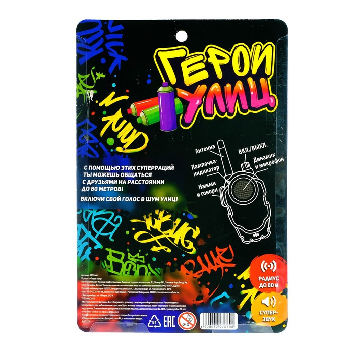 Набор раций «Герои улиц», радиус действия до 80 м, работает от батареек