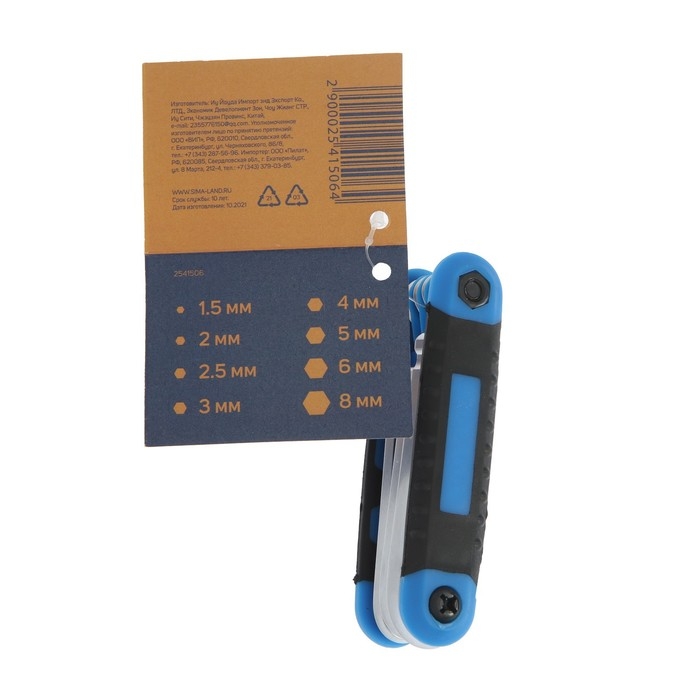 Набор ключей имбусовых складных ТУНДРА, с шаром, 1.5 - 8 мм, 8 шт.