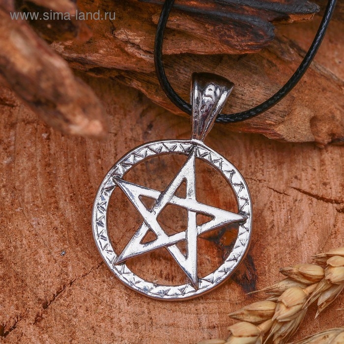 Кулон унисекс «Белая пентаграмма», цвет чернёное серебро на чёрном шнурке, 45 см