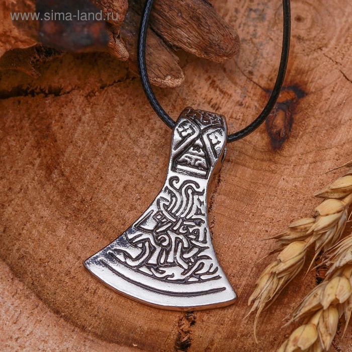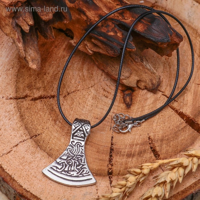 Кулон унисекс «Секира Перуна», цвет чернёное серебро на чёрном шнурке, 42 см