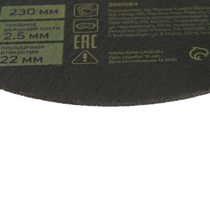 Круг отрезной по металлу ТУНДРА, армированный, 230 х 2.5 х 22 мм
