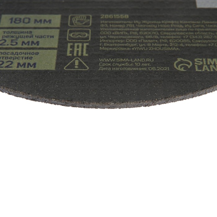 Круг отрезной по металлу ТУНДРА, армированный, 180 х 2.5 х 22 мм