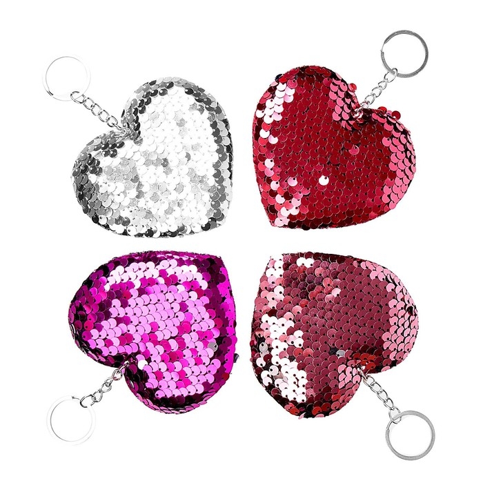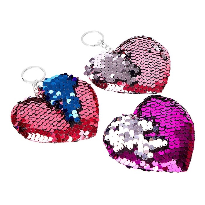 Мягкая игрушка «Сердечко» с пайетками, на брелоке, 10 см, цвет белый