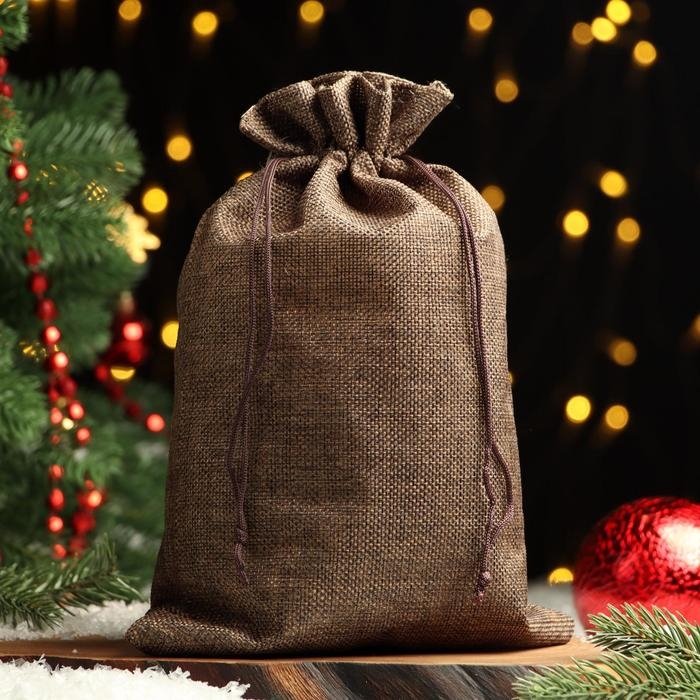 Мешочек подарочный из холщи, коричневый, 20 х 28 см