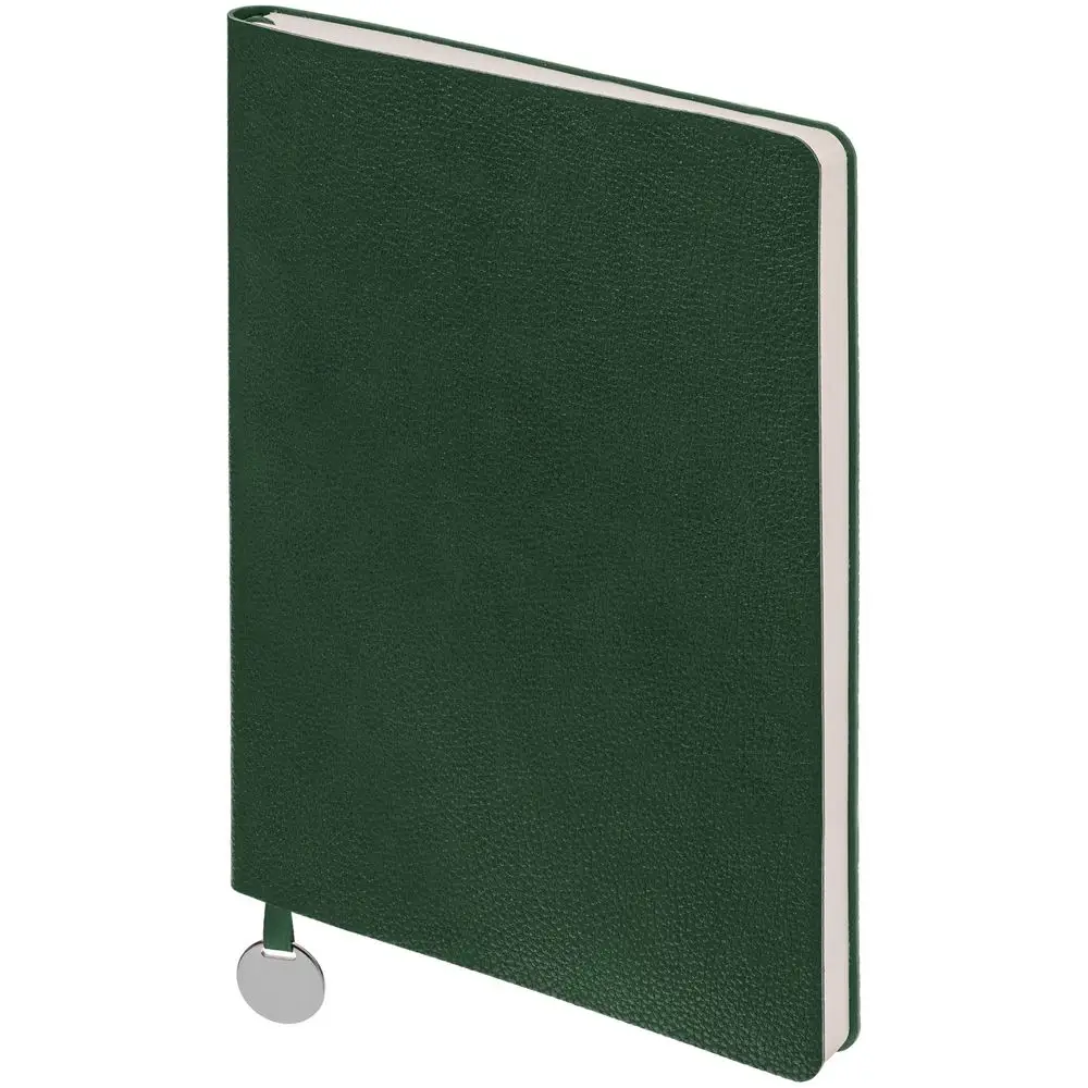Недатированный ежедневник с гибкой обложкой из фактурного материала La Fite и металлическим шильдом на ляссе и ручка в тон, упакованные в подарочную коробку из дизайнерского картона.