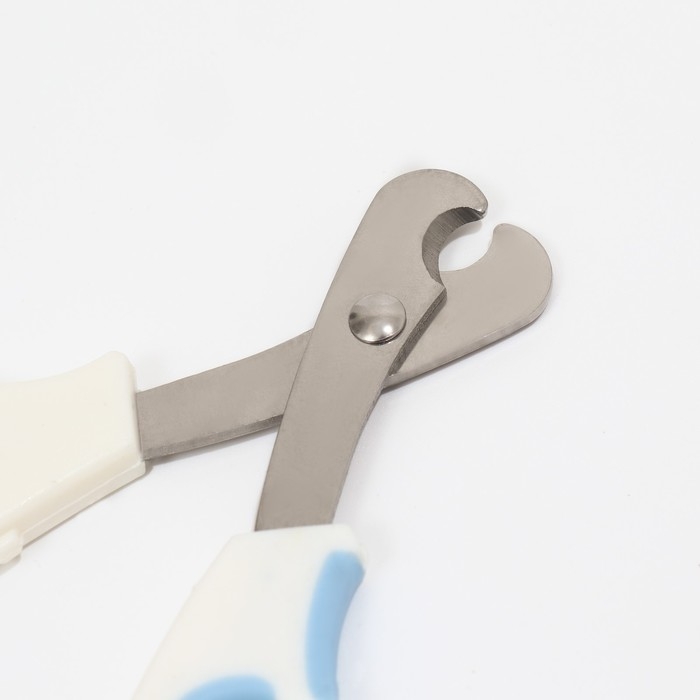 Ножницы-когтерезы "Пижон" Premium изогнутые, с упором для пальца, бело-голубые