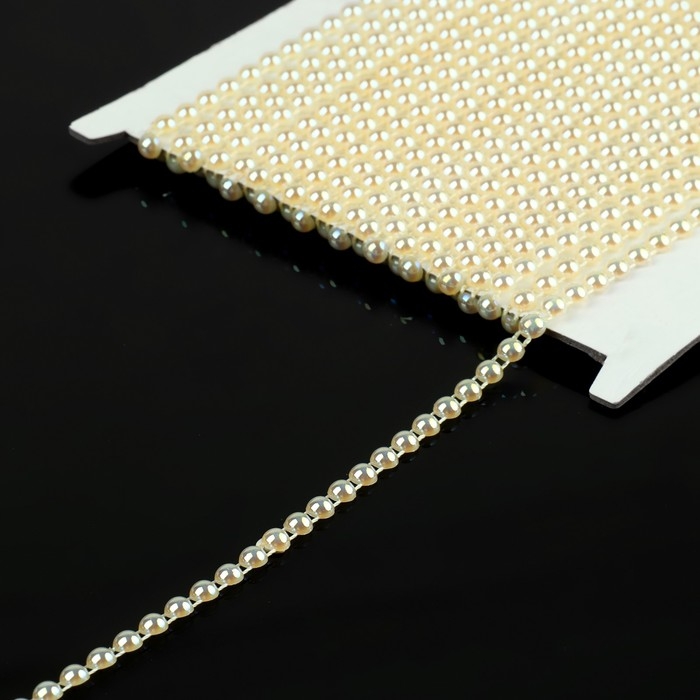 Жемчуг на нитях, с голографией, плоский, 4,5 мм, 9 ± 1 м, цвет белый
