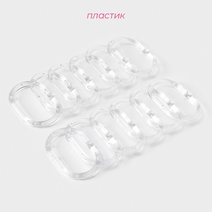 Кольца для штор Доляна, в ванную, пластик, 12 шт, 5,9×3,9 см, прозрачный