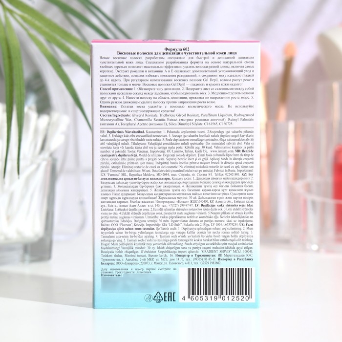 Восковые полоски Deep depil для депиляции чувствительной кожи лица, 20 шт