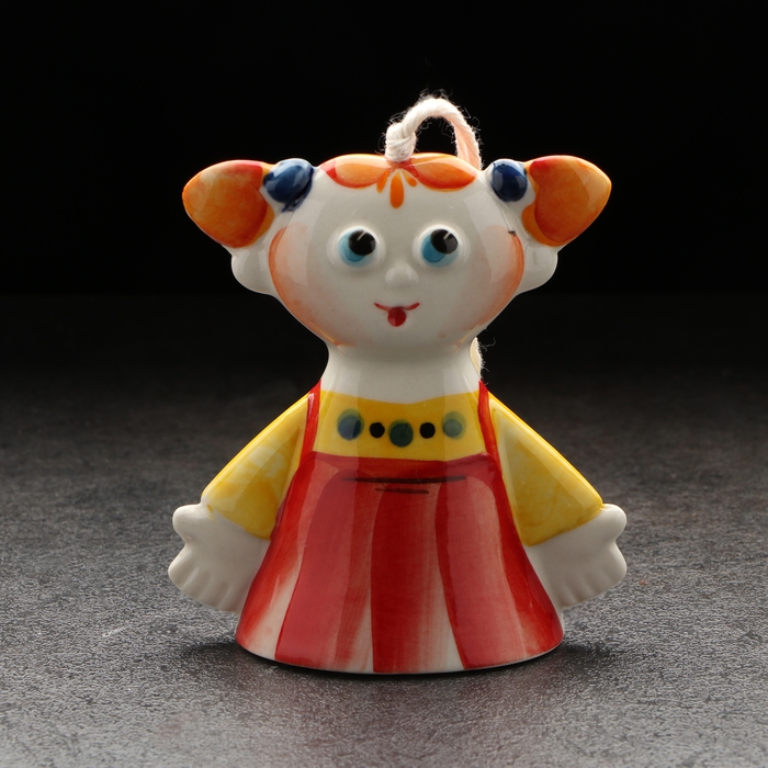 Колокольчик фарфоровый "Девочка", авторская роспись, 9 см