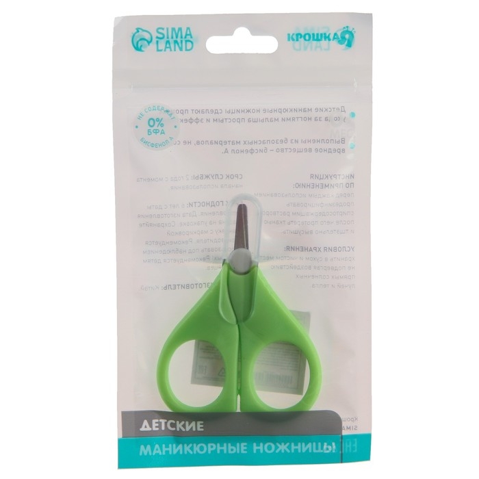 Ножницы детские безопасные, маникюрные, с чехлом, от 0 мес., цвет зелёный